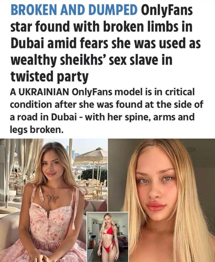 뉴스) 두바이에서 서양 여자가 성노예로 쓰임 rh1 0 257 0 2025.03.24 00:15 온리팬즈(성적인 컨텐츠 올리는 플랫폼) 스타가 두바이에서 척추, 팔, 다리가 부러진 채로 길가에서 발견됐음알고보니 파티에 초대됐다가 성노예로 쓰였다고 함현재 위중한 상태라고 0