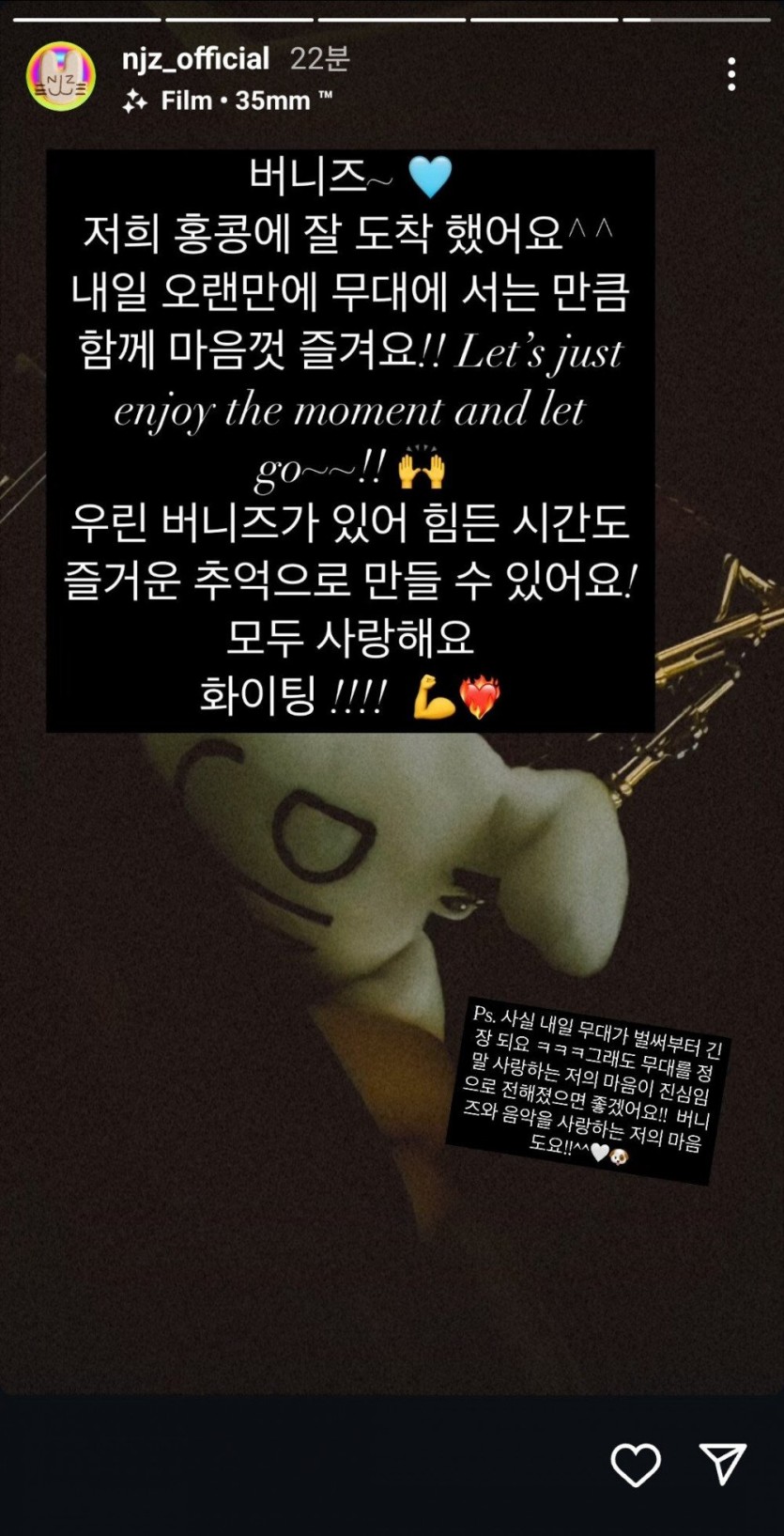 오늘 새벽에 올라온 NJZ 계정 인스타 스토리