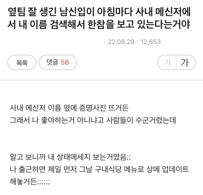 옆 팀 잘생긴 신입이 출근하면 내 이름을 검색한다