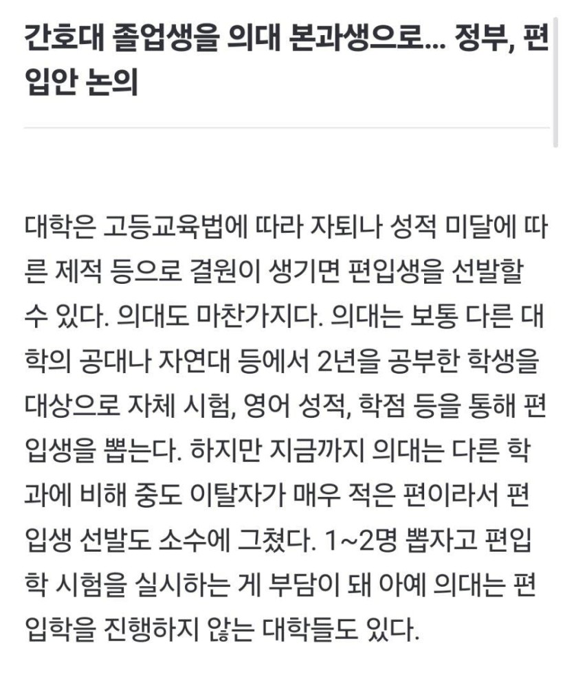 간호생을 의대생으로 편입한다 ㄷㄷ rh1 0 166 0 2025.03.23 09:15 https://www.chosun.com/national/education/2025/03/19/5ZN5RLHVJFFXVJHWGWZZSLKJCQ/와우 레벨업이네요 의대생이 제일 싫어하는거 아닌가 ㅋㅋ 0