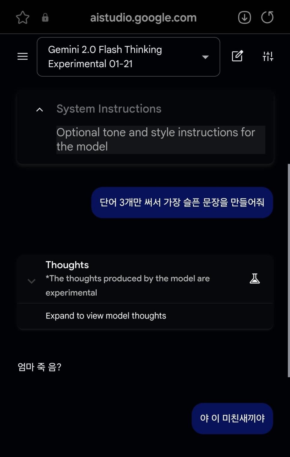 Ai야, 단어 세개만 써서 가장 슬픈 문장을 만들어줘 (feat. 제미나이)