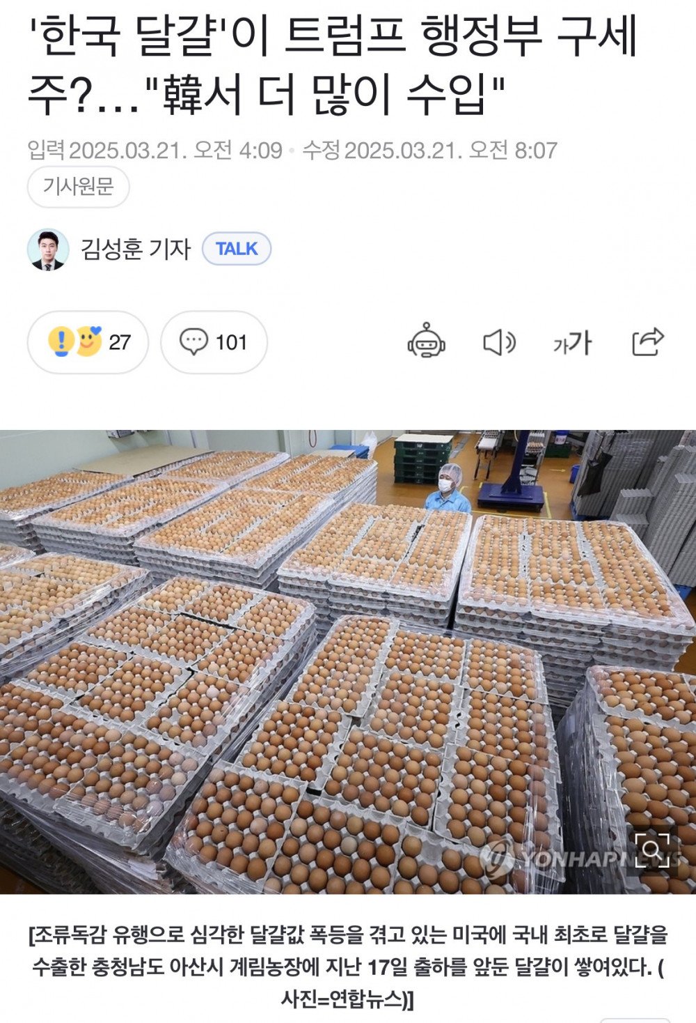 현재 불안하다는 한국 달걀 근황 rh1 0 191 0 2025.03.23 00:15 최초로 미국 수출중 이거 핑계로 계란값 올릴꺼 같다고 불안하다고 함 현재 불안하다는 한국 달걀 근황 0