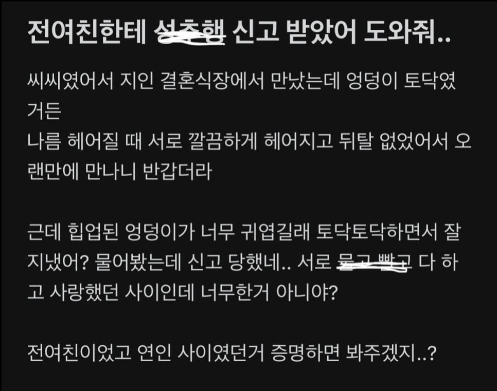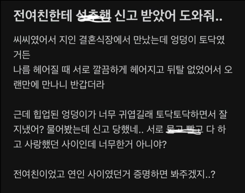 결혼식장에서 만난 전여친 엉덩이 만져서 성추행으로 신고당한 사람