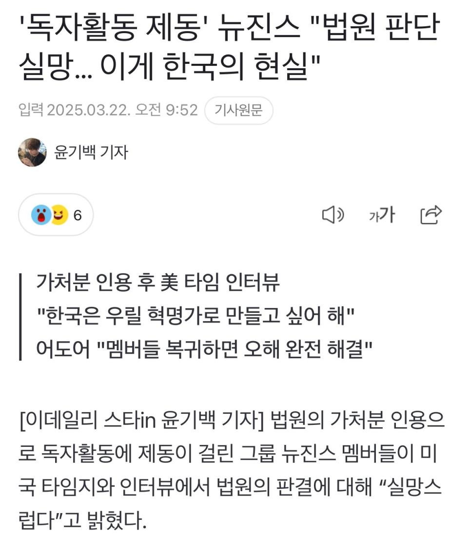 뉴진스 "법원판단 실망… 이게 한국의 현실"