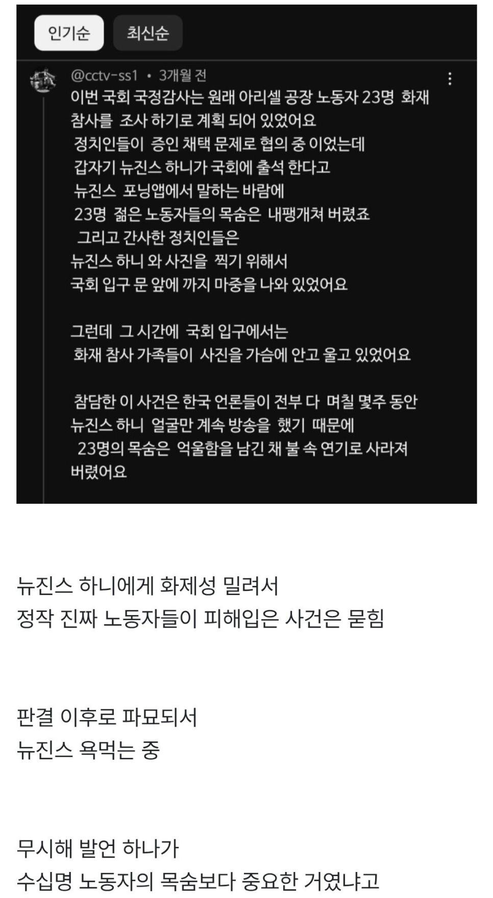 뉴진스 하니 국감날 슬픈 이야기