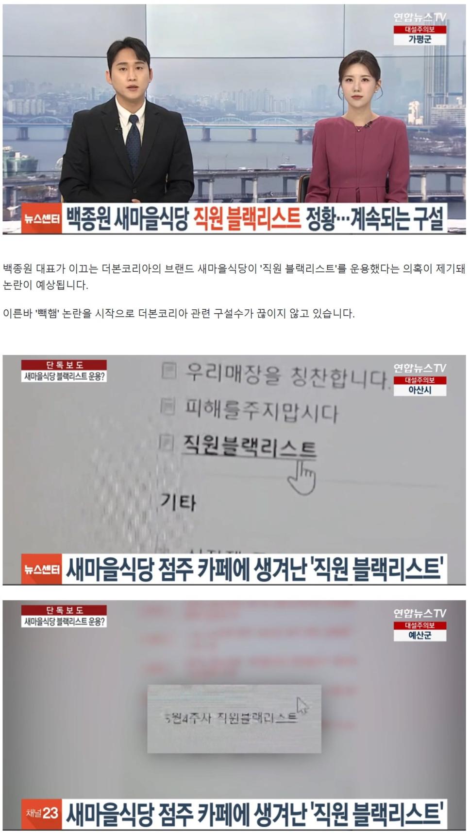 [단독] 백종원 새마을식당 '직원 블랙리스트' 정황 논란…계속되는 구설
