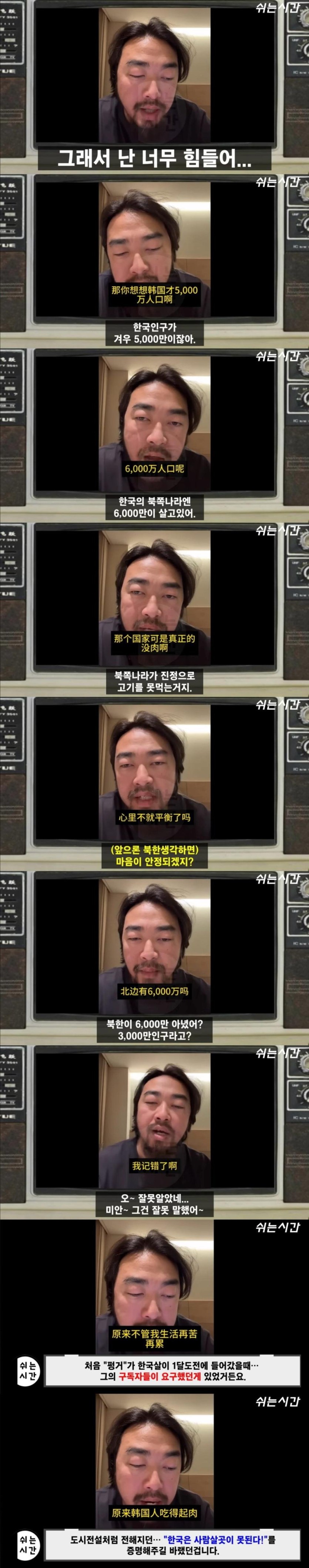 한국인들이 진짜 고기 못 먹는지 확인하러 온 중국인