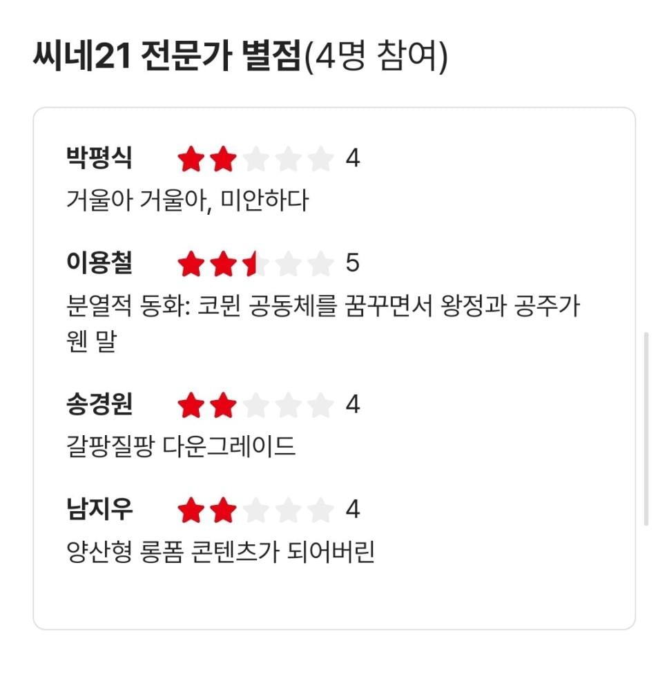 박평식 평론가 백설공주 한줄평