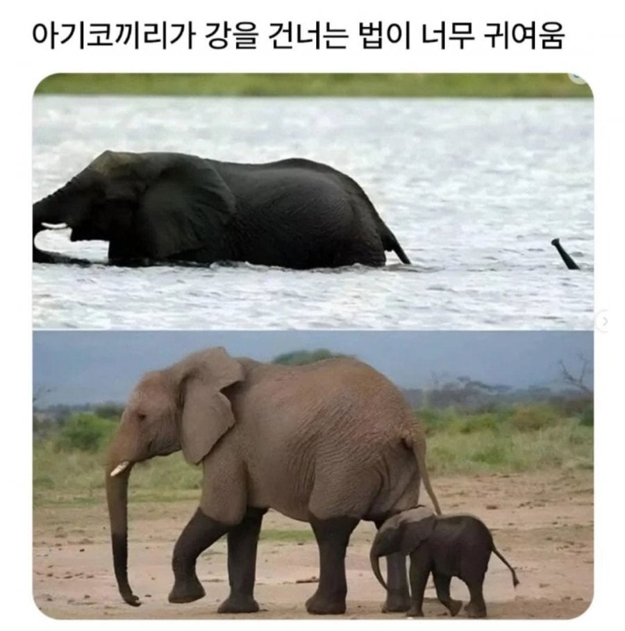 아기코끼리가 강을 건너는 법이 너무 귀여움