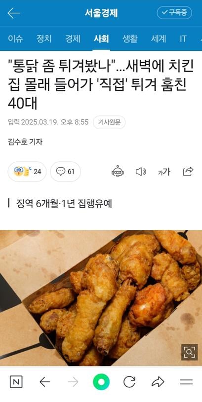 새벽 치킨집 잠입 닭튀겨서 훔친 40대.jpg
