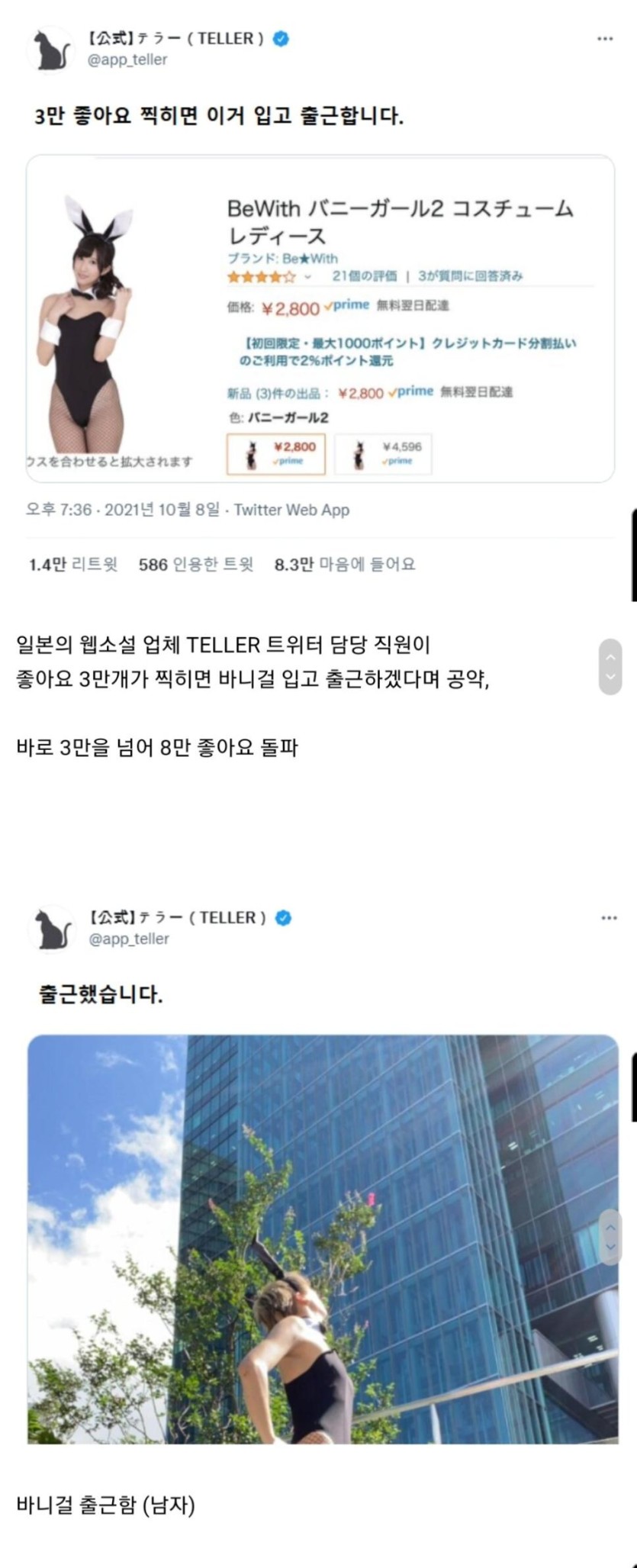 좋아요 3만 찍히면 바니걸 복장 입고 출근합니다.jpg