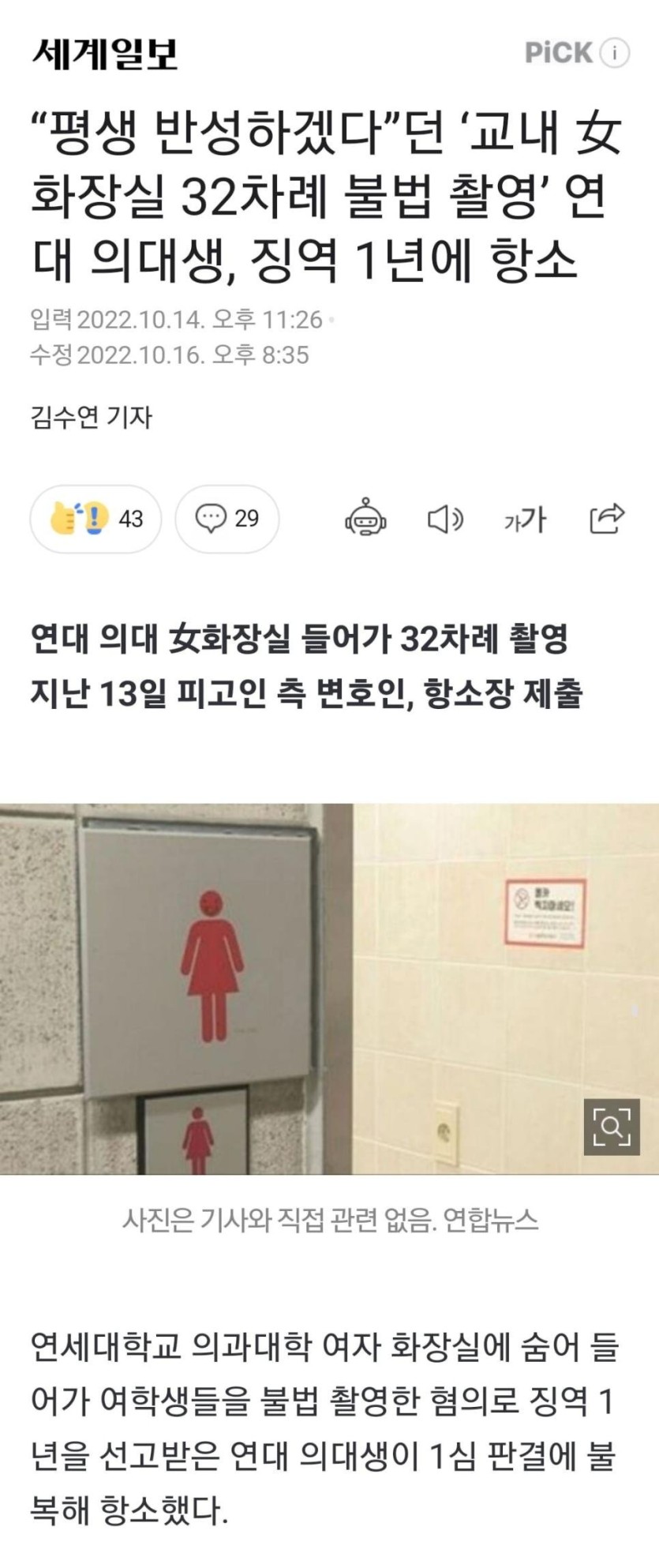 교내 캠퍼스 여자화장실 불법촬영한 연세대 의대생 근황.jpg