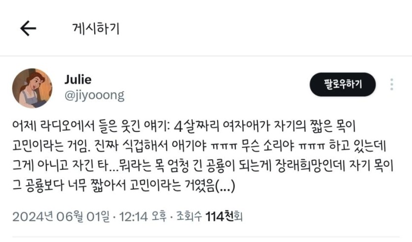 4살짜리 여자애가 자기의 짧은 목이 고민이라는 거임.jpg