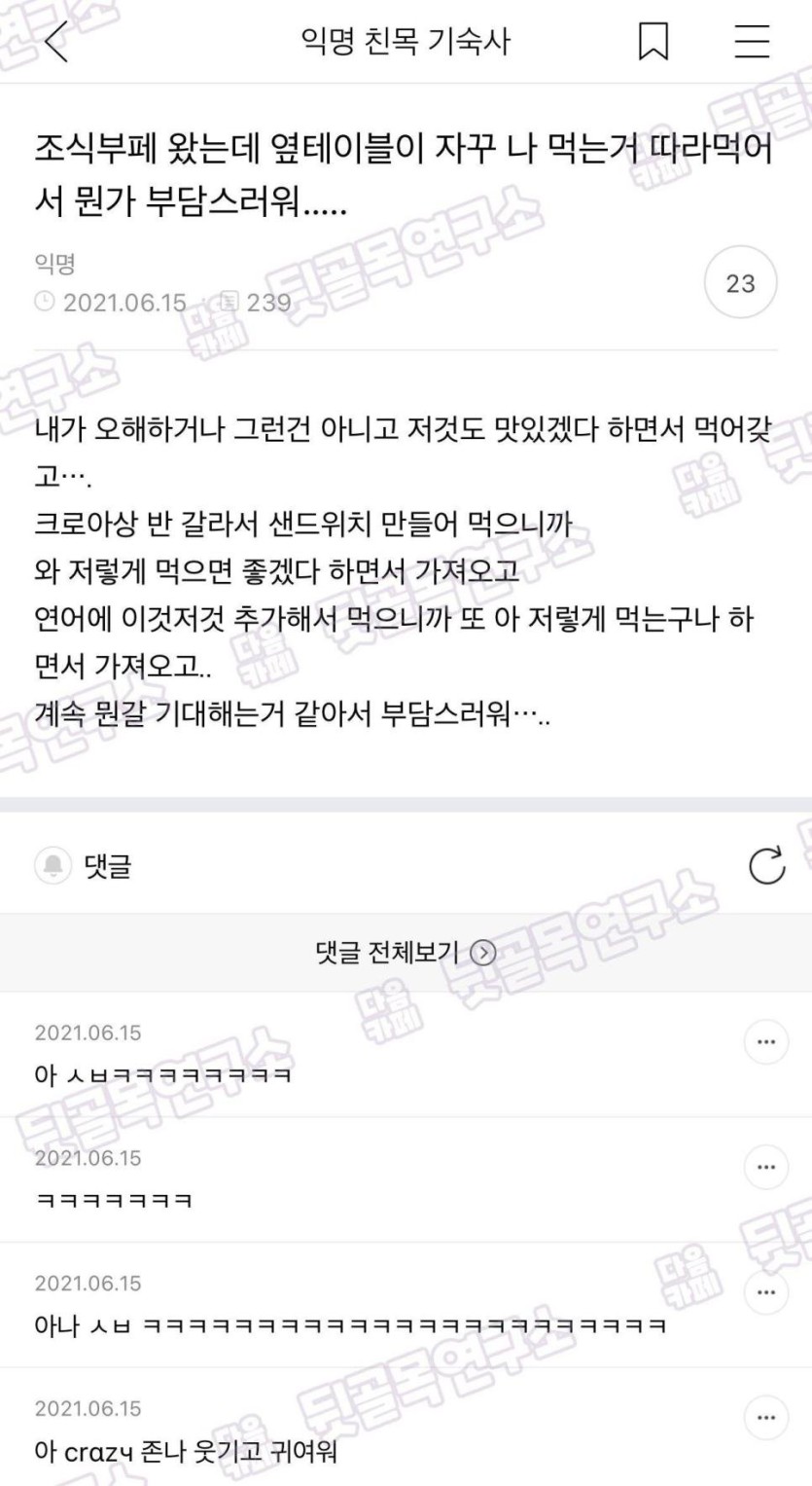 조식부페 왔는데 옆테이블이 자꾸 나를 따라한다