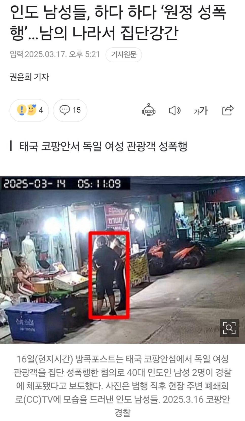 [사회] 인도 남성들,하다하다 '원정 성폭행' 남의 나라서 집단강간