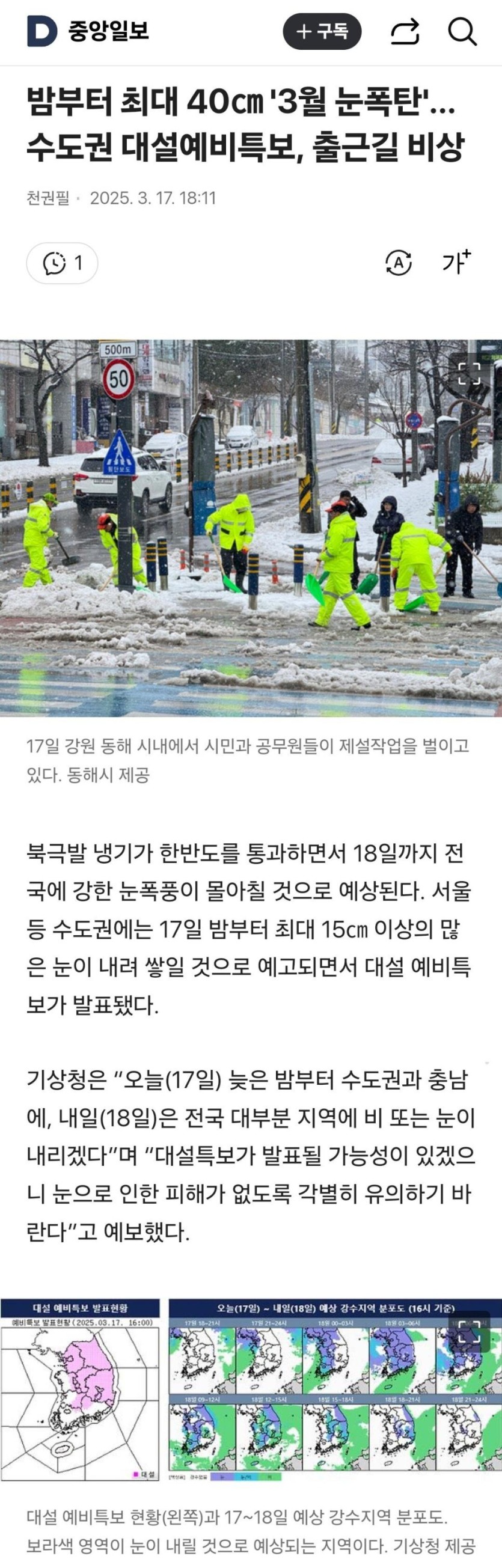 밤부터 40cm 3월 눈폭탄 수도권 대설예비특보