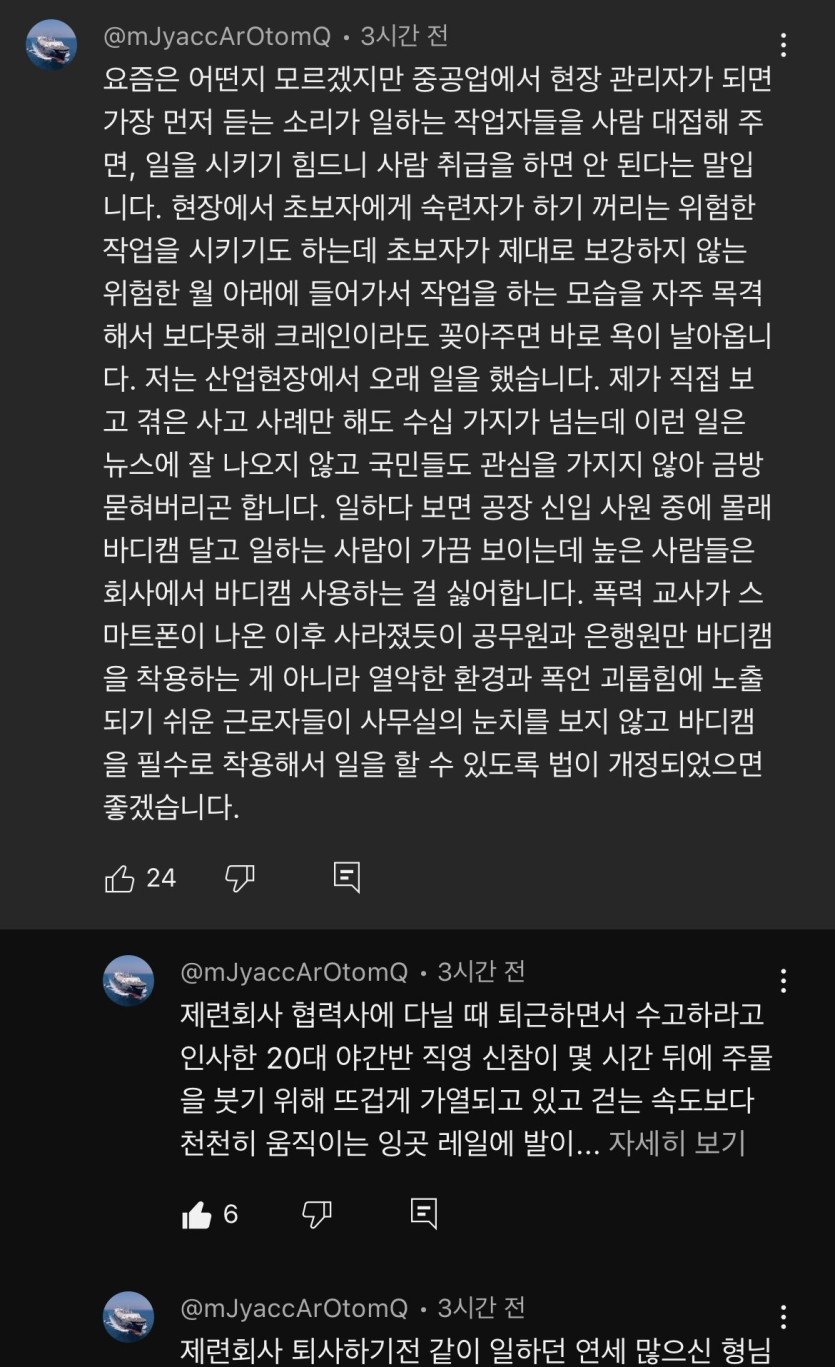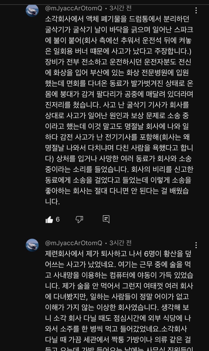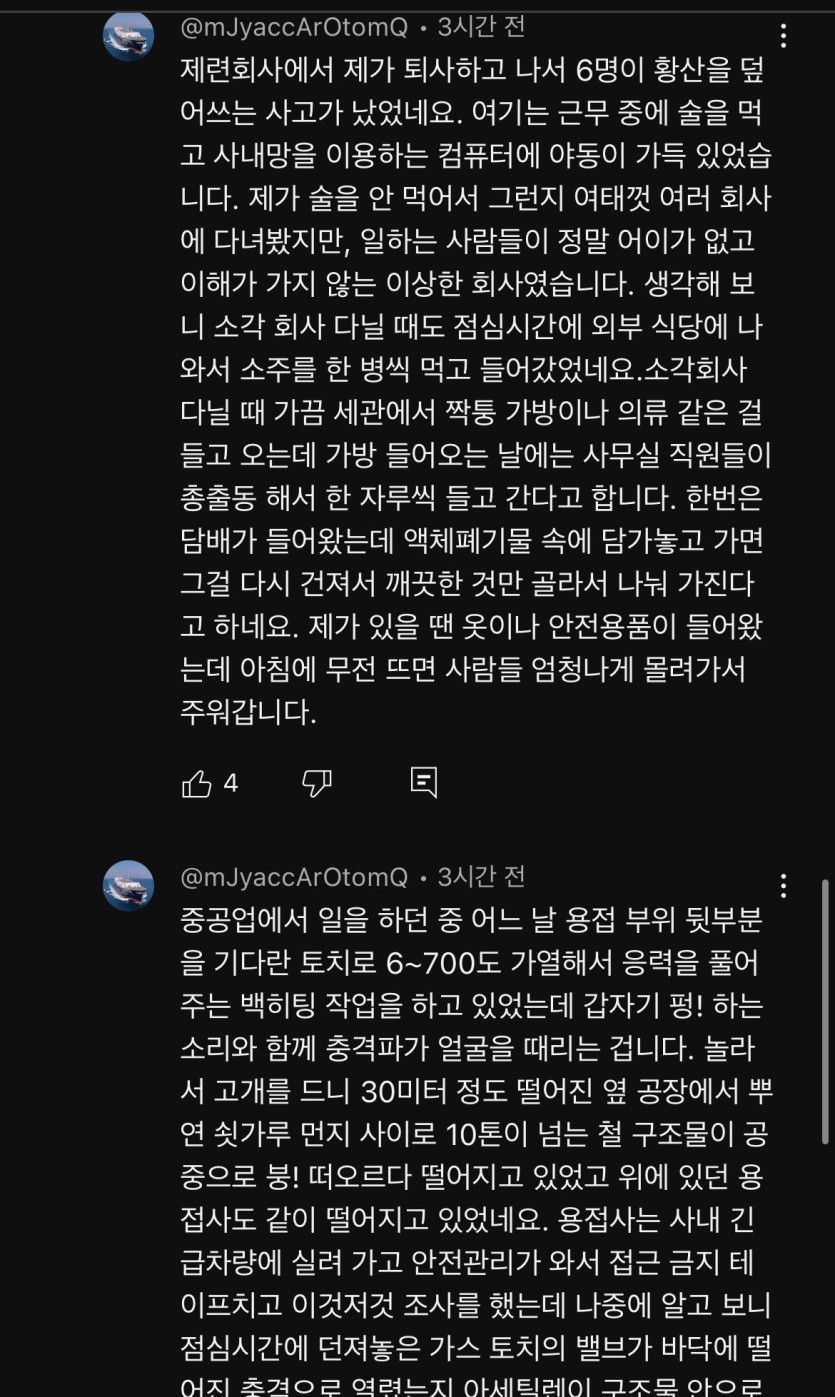 현대제철 사망사고 충격적인 현직자 경험담 유튜브 댓글