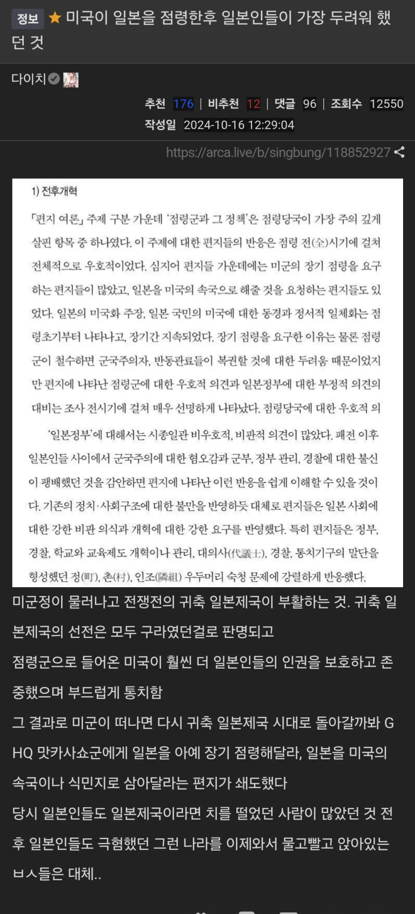 미국이 일본을 점령한후 일본인들이 가장 두려워 했던 것