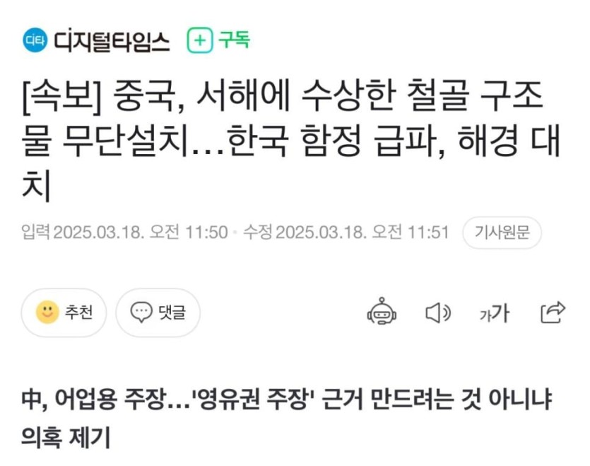 근래 중국에서 이 구역에 구조물을 잇따라 설치하며