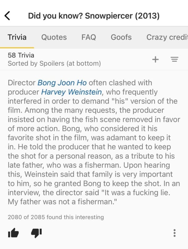 3. 후에 봉준호 감독 "사실 구라임, 우리 아버지 어부 ㄴㄴ"라고 인터뷰 함