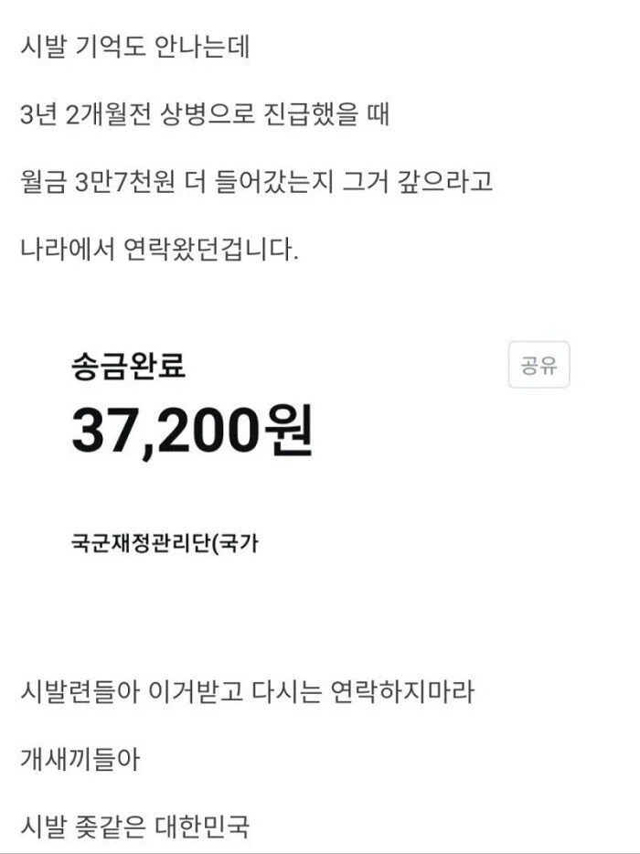 전역하고 빚 갚으라고 하는 군대