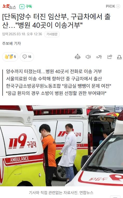 [단독]양수터진 임산부, 구급차에서 출산 "병원 40곳 이송거부"