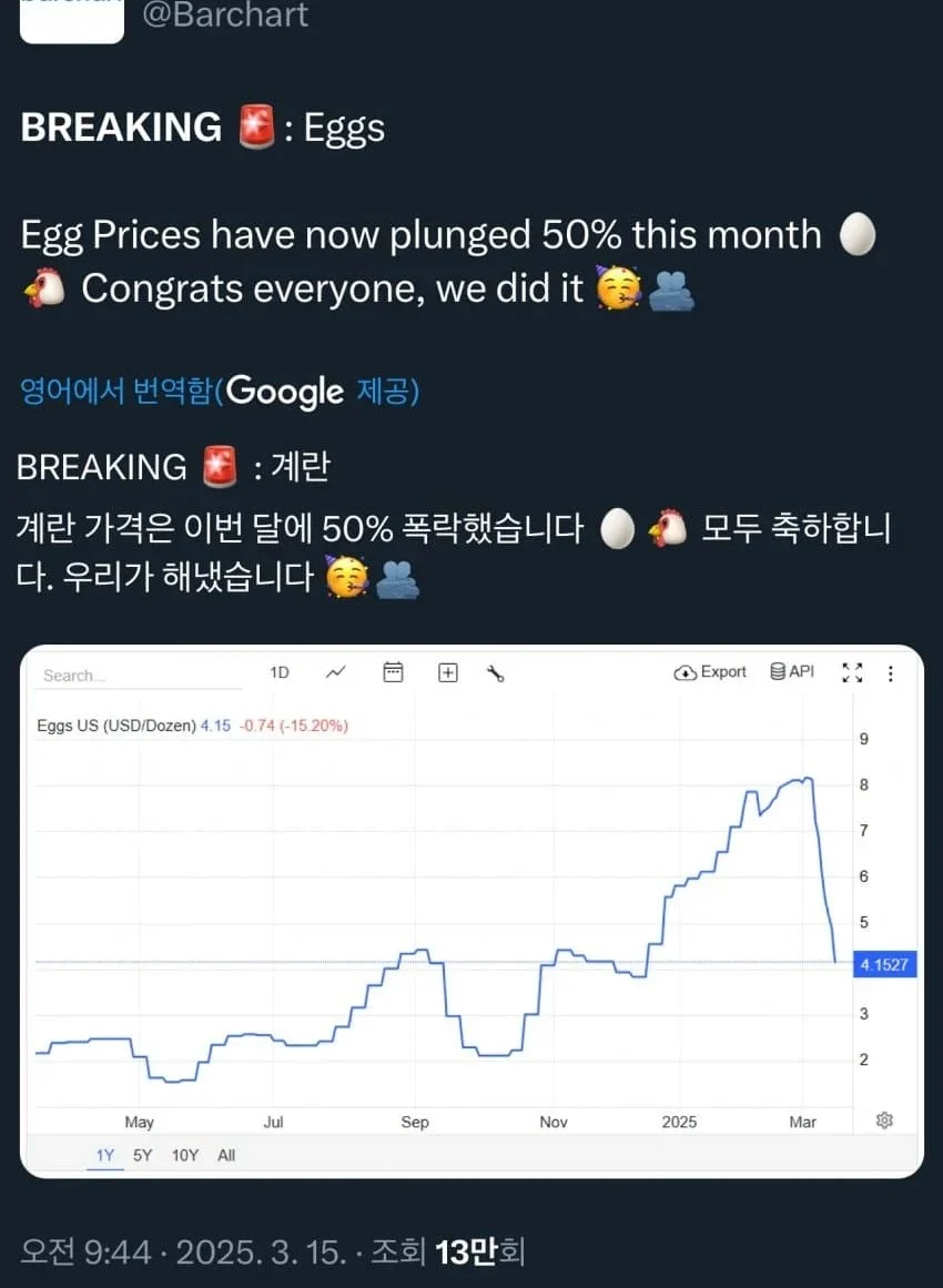 미국 : 계란값이 내려가기 시작했다!!!