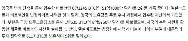 비트코인을 산적은 없는데 비트코인 보유국 3위에 빛나는 국가라고