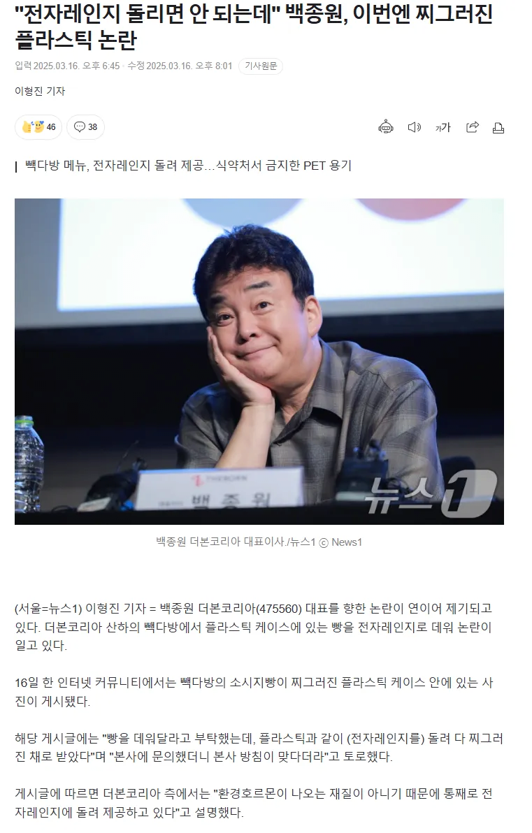 백종원, 이번엔 찌그러진 플라스틱 논란