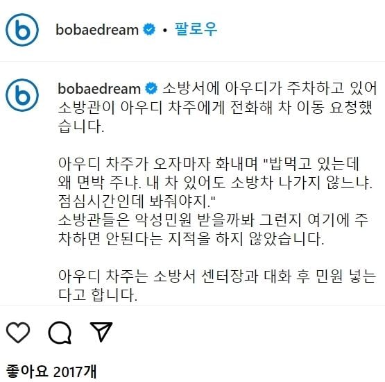 보배드림 인스타에 올라온 무개념 아우디.JPG