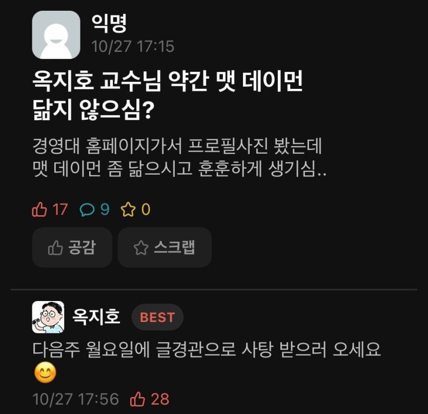 자신의 외모평가를 하는 학생을 본 교수님 반응...JPG