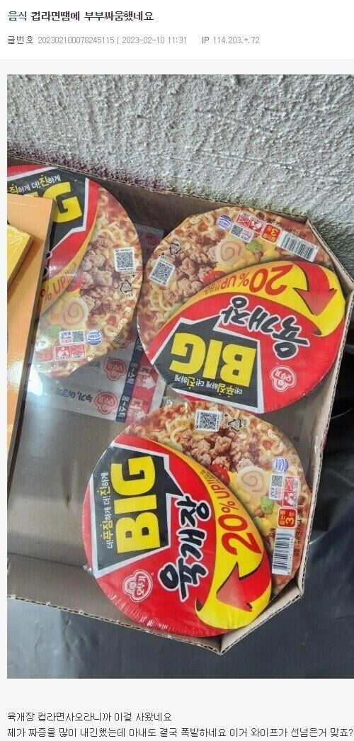 컵라면 때문에 부부싸움