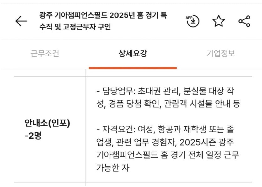 기아타이거즈 안내소 채용 자격조건