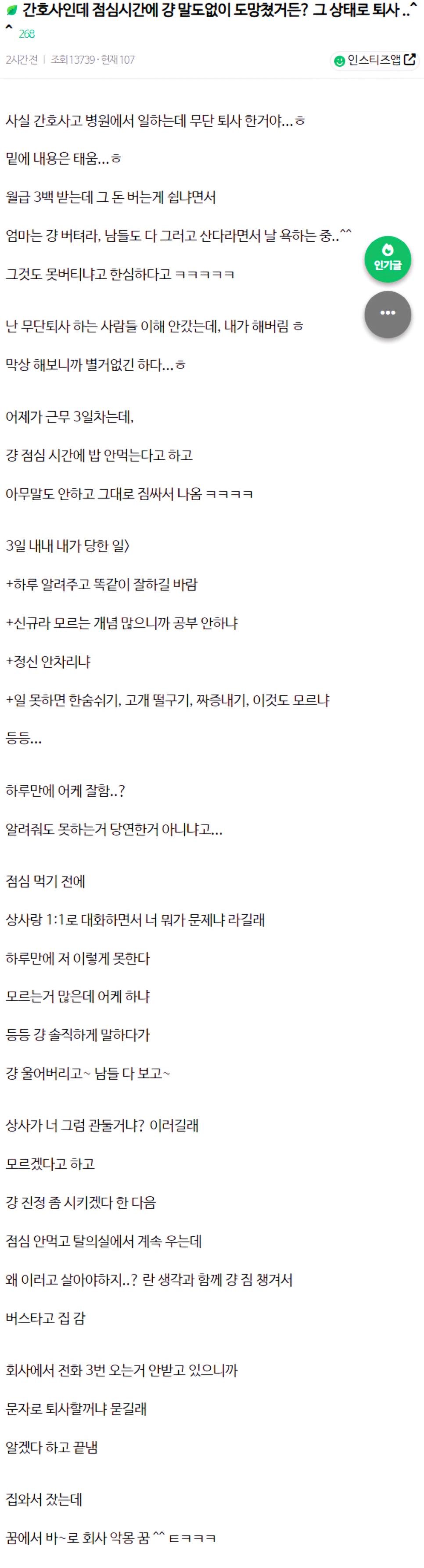3일만에 간호사 태움때문에 무단퇴사한 여성 ㄷ..jpg
