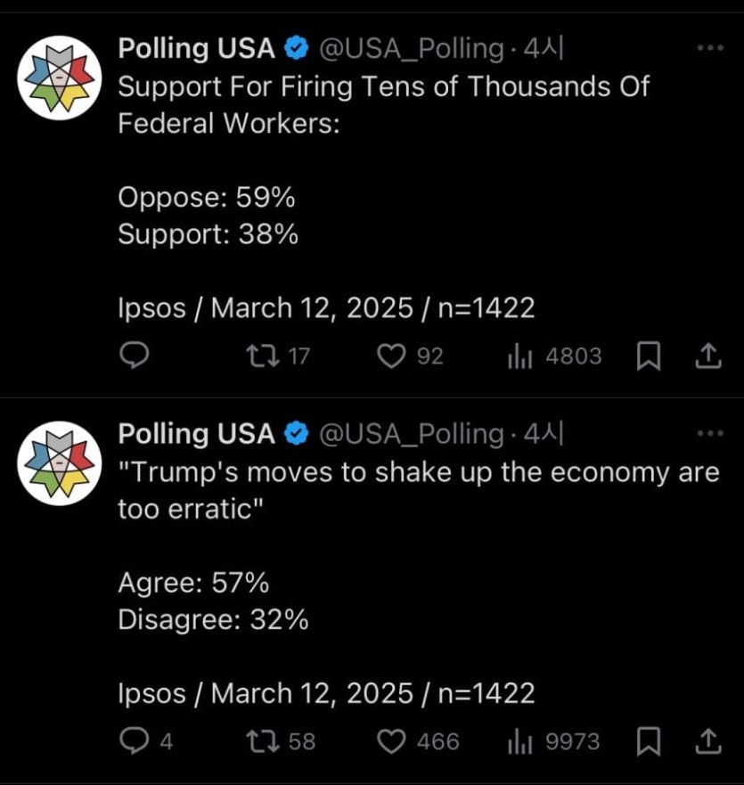트럼프의 여러 정책에 대한 미국 여론 근황