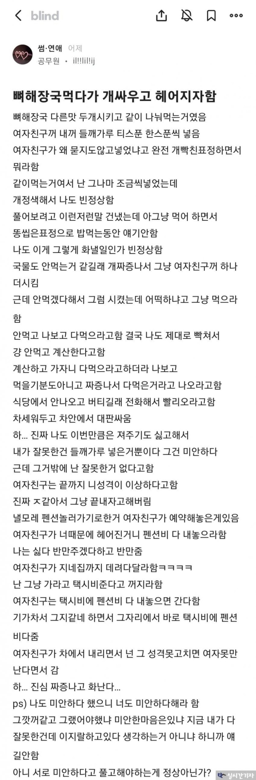 들깨가루 넣어서 헤어졌다