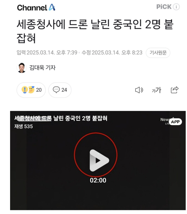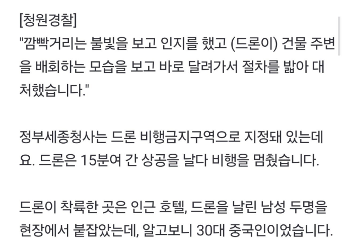 세종청사에 드론날린 중국인 2명 붙잡혀