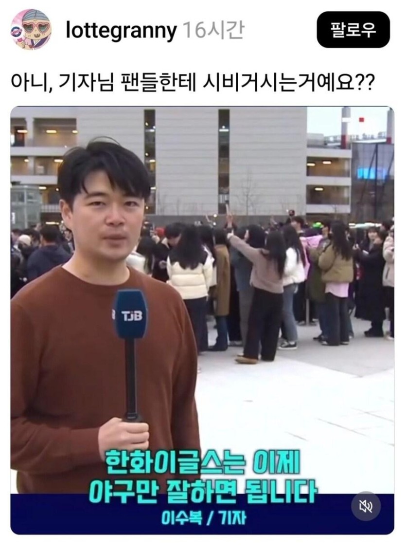 기자의 말 한마디에 긁혀버린 야구 팬 ㅋㅋㅋ