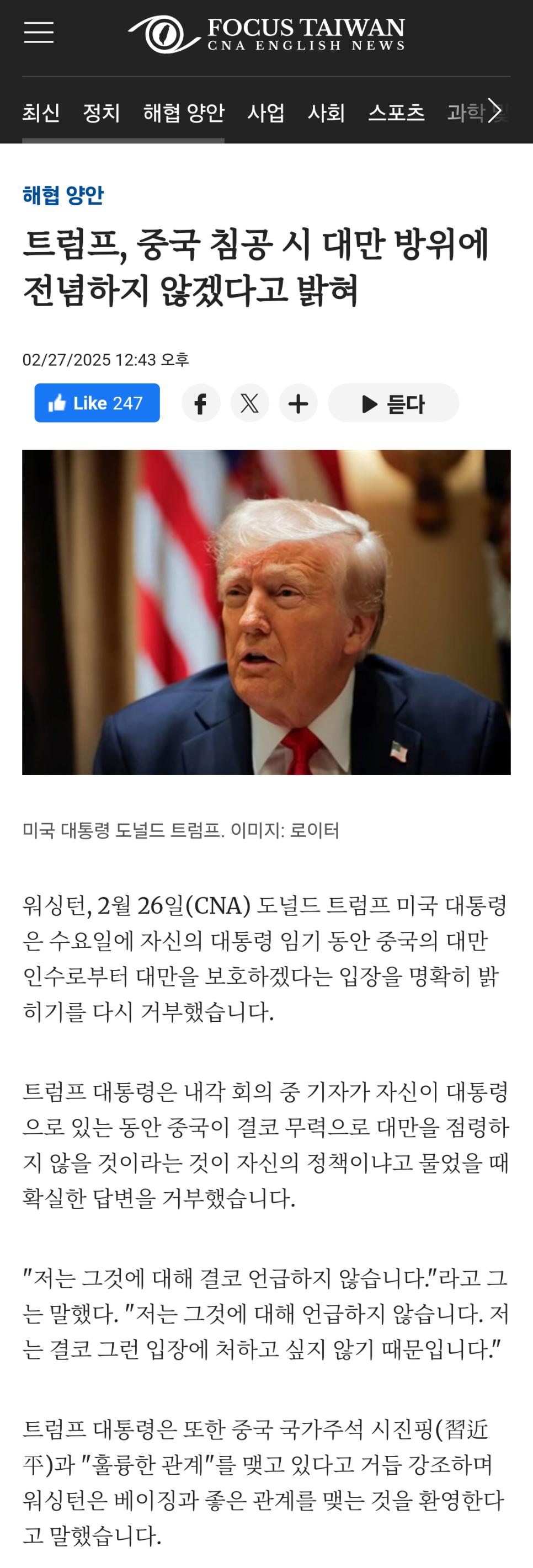 (대만을 중국에게 넘겨주려는 트럼프를 한국의 트뽕들이 쉴드치며)