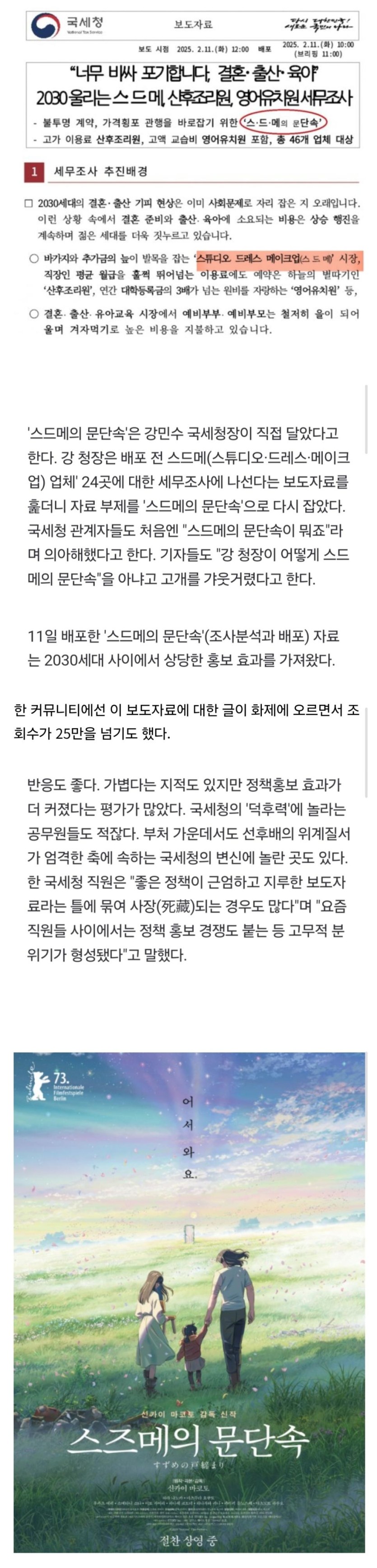 스드메의 문단속 시작한 국세청