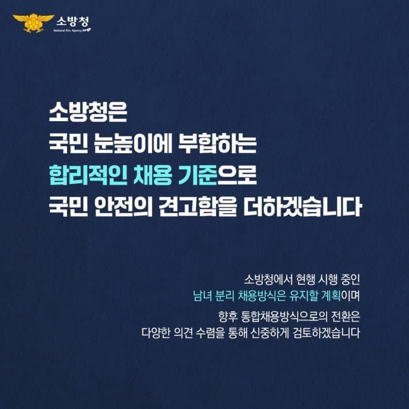 소방관 남녀통합채용 철회