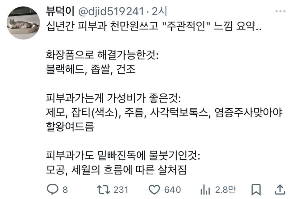 피부과 천만원쓰고 "주관적인" 느낌 요약..twt