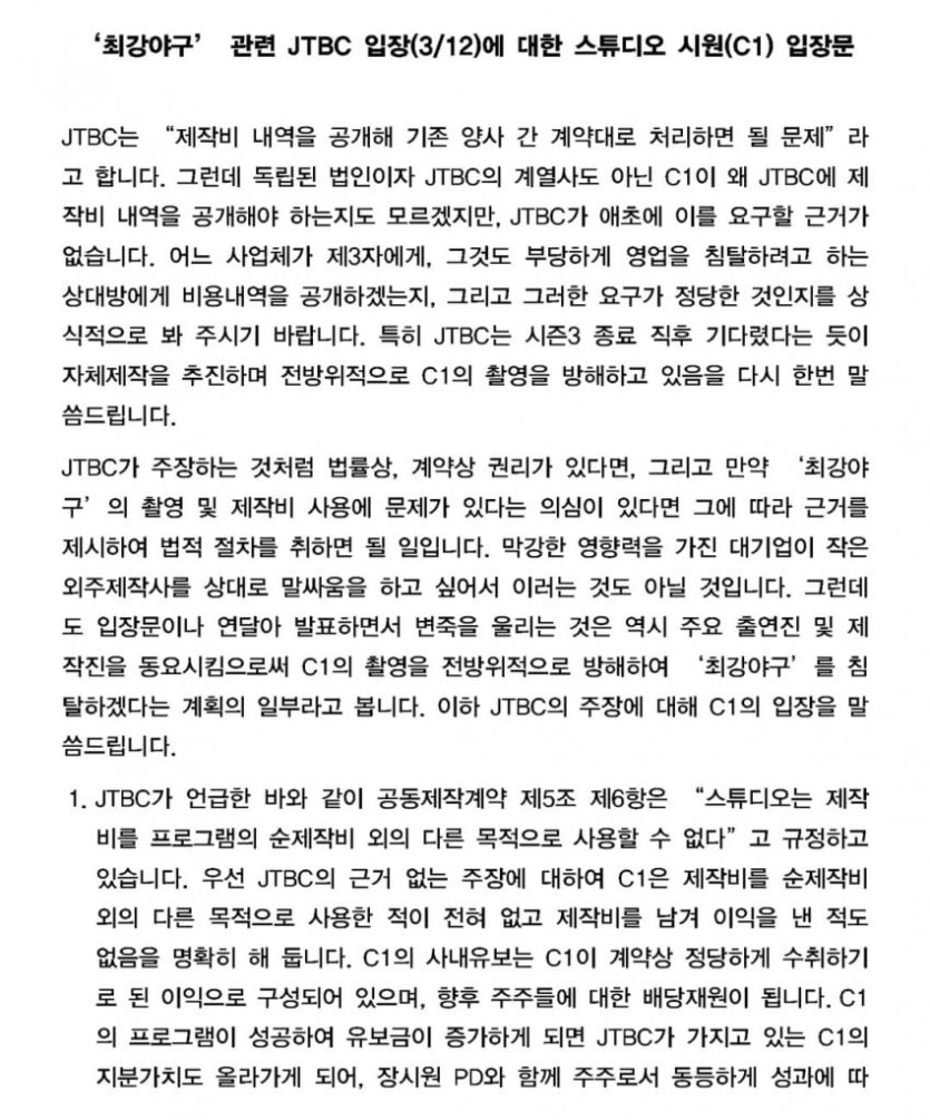 '최강야구' 장시원 PD 두번째 입장문