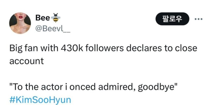 팔로워 43만명 김수현 외국팬, 계정 폐쇄