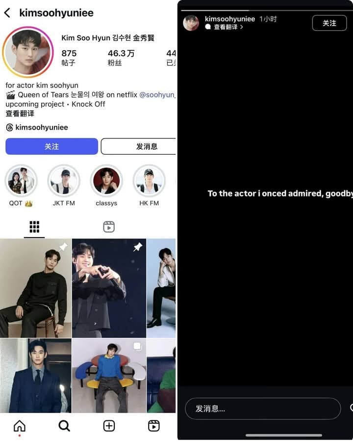 팔로워 43만명 김수현 외국팬, 계정 폐쇄