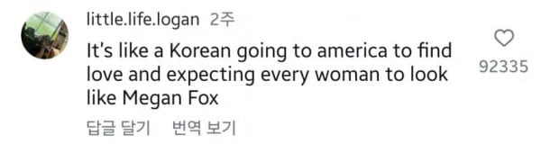 "한남이 미국가서 메간 폭스 찾는거랑 뭐가 다르냐 시발련아"