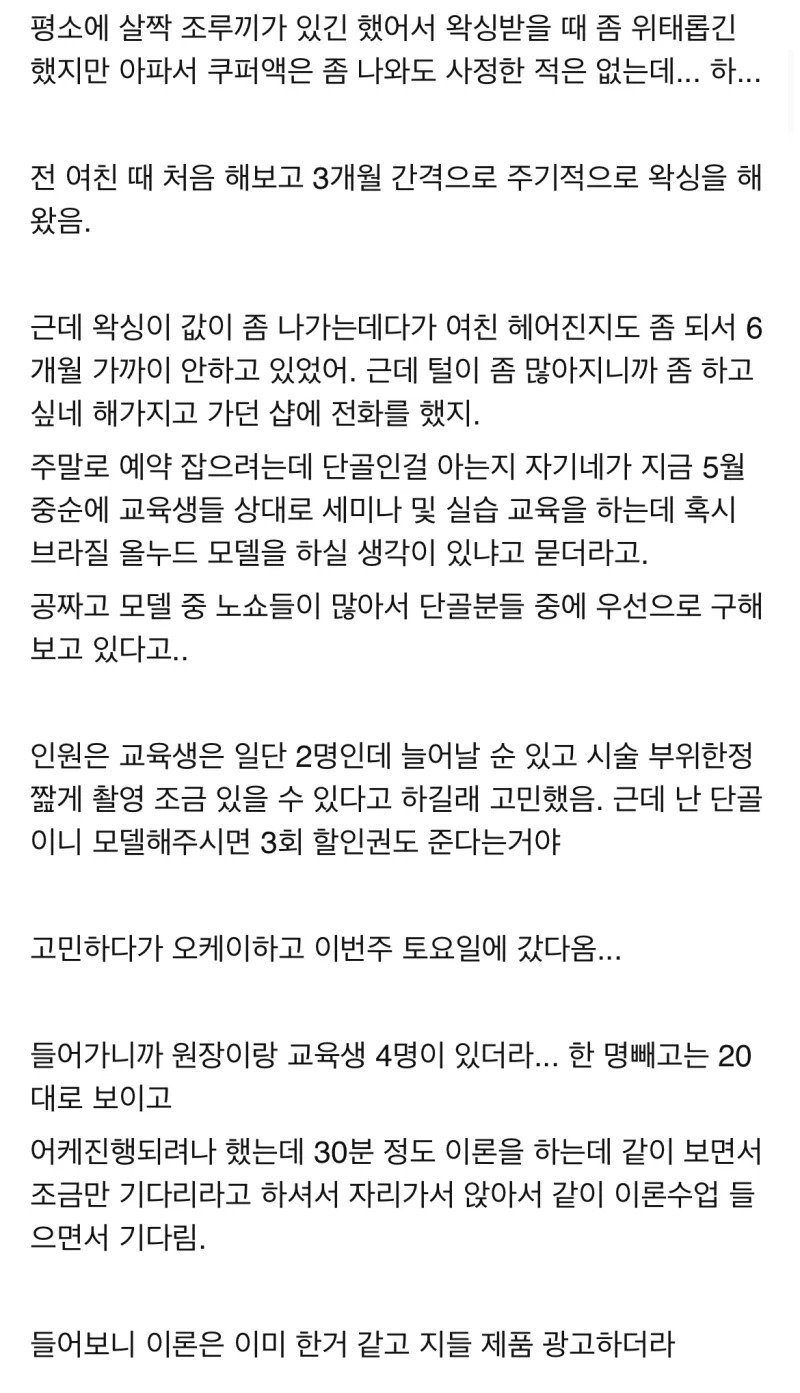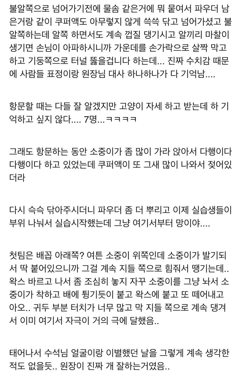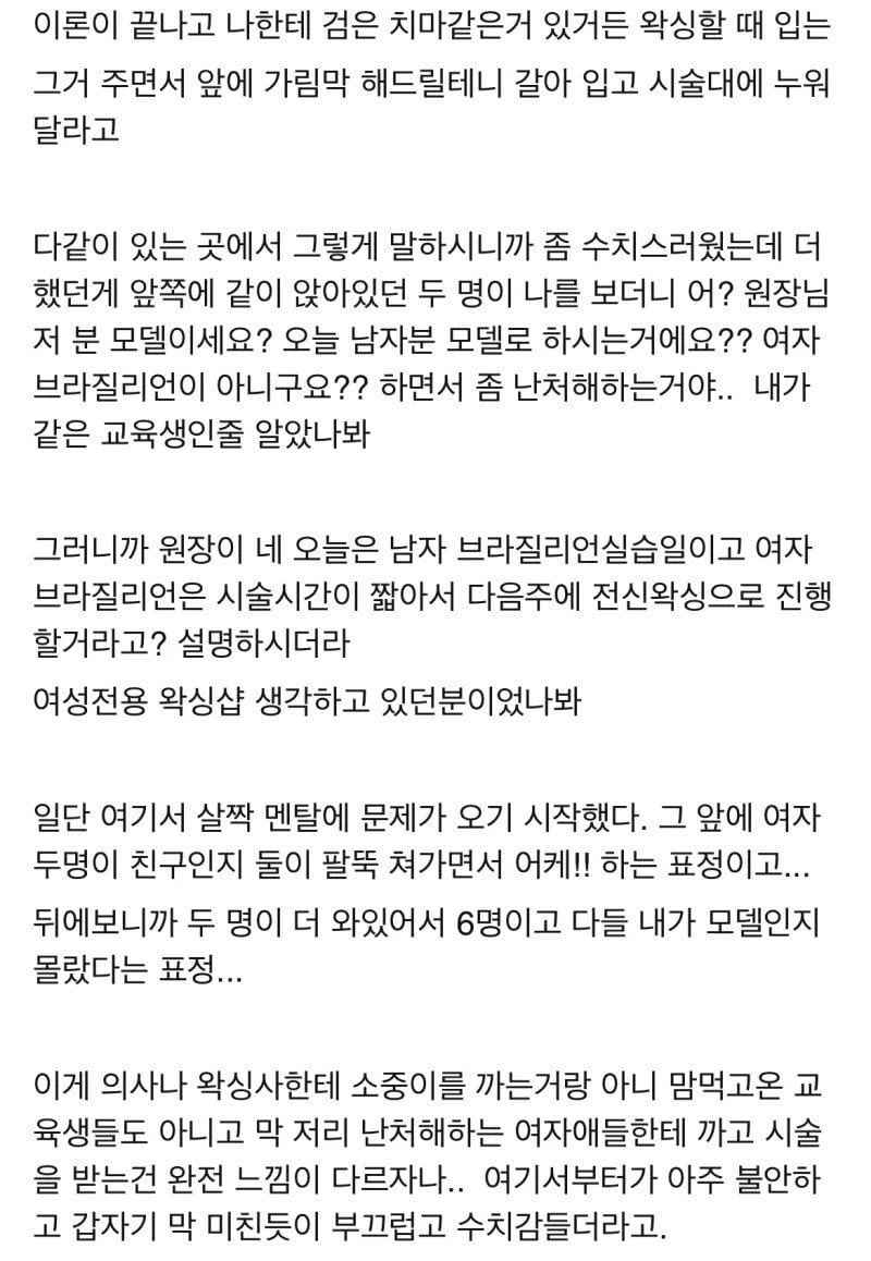주말에 왁싱 실습 모델하다 ㅅㅈ한 사람