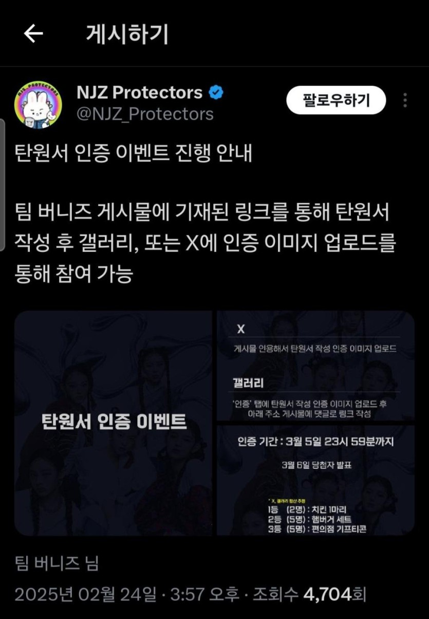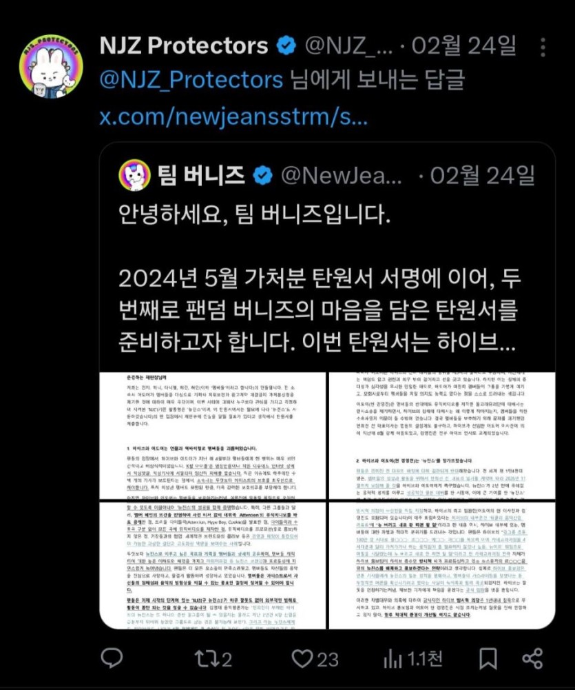 뉴진스 팬클럽에서 탄원서 이벤트? 라는 것을 하고있다고