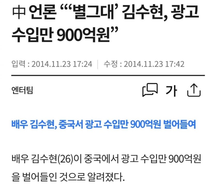 김수현 측이 열애설 부인할 당시 기사 ㄷㄷㄷ