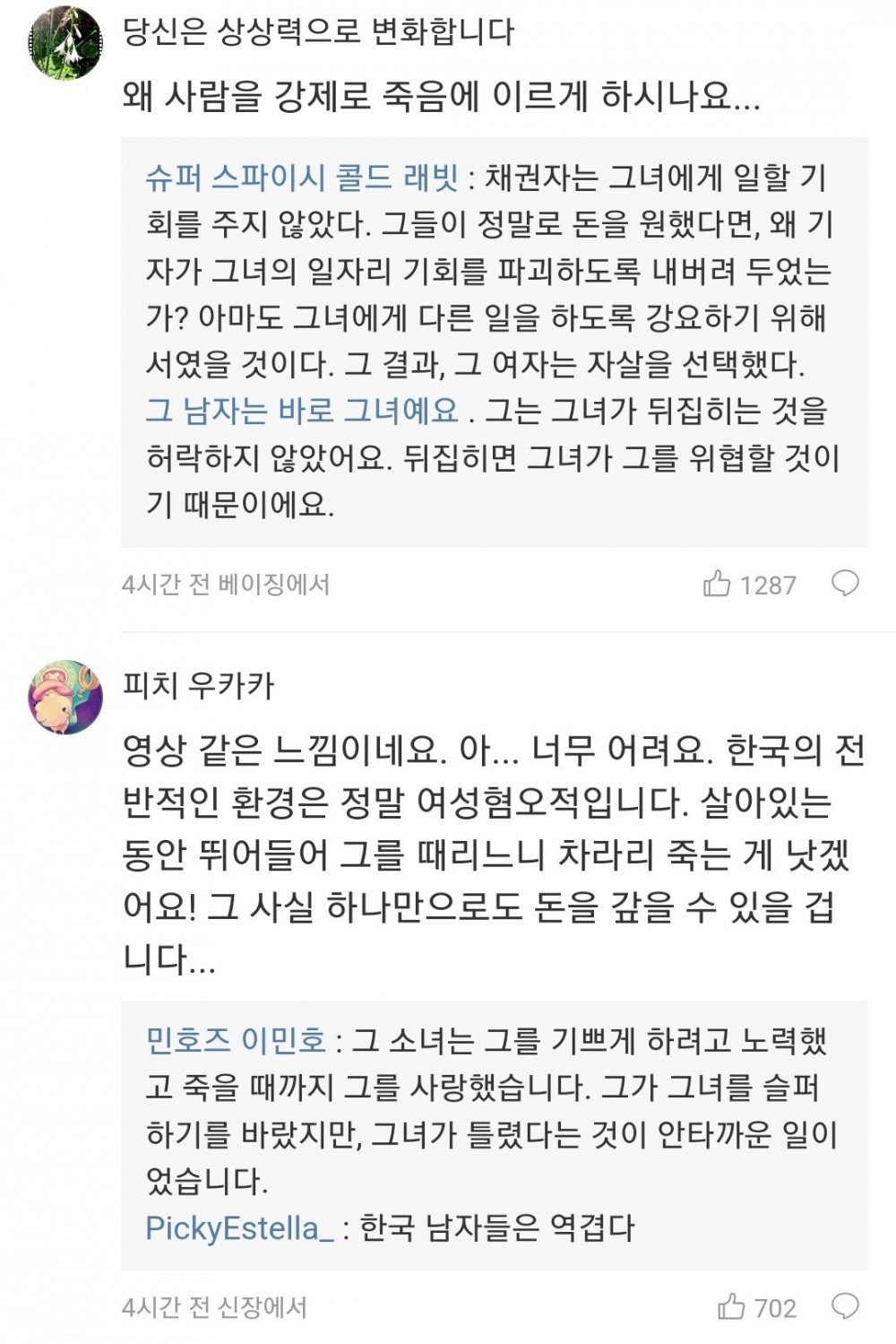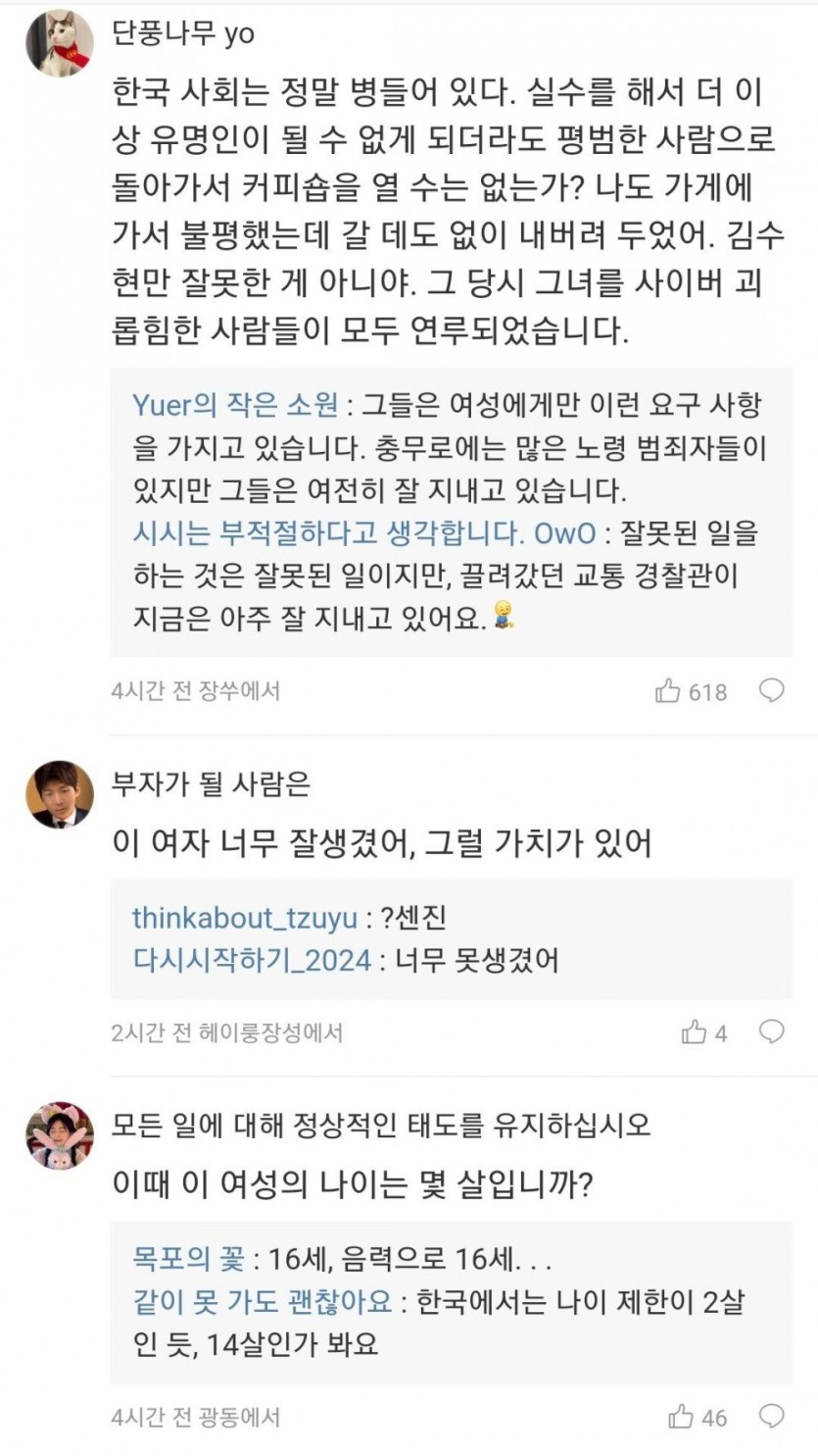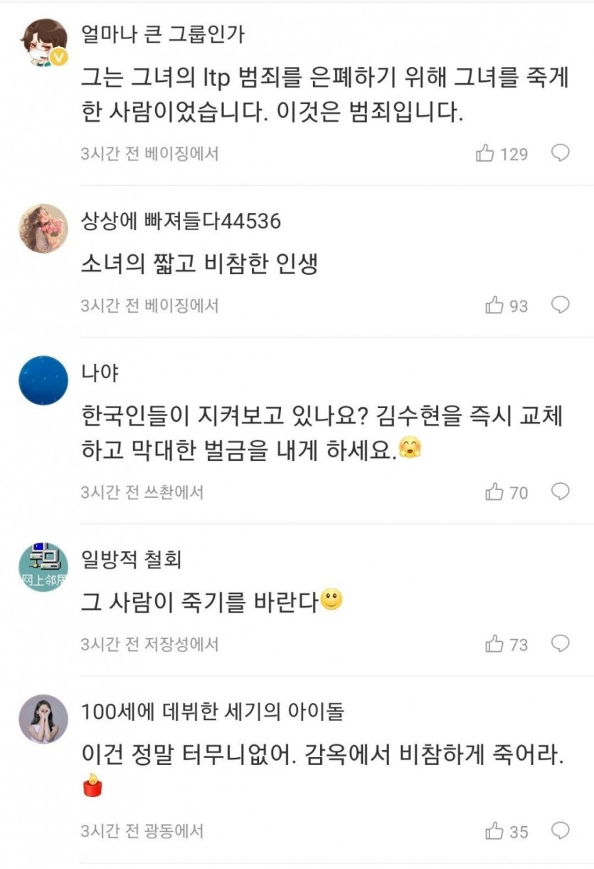 김수현에 대한 중국 웨이보 반응들